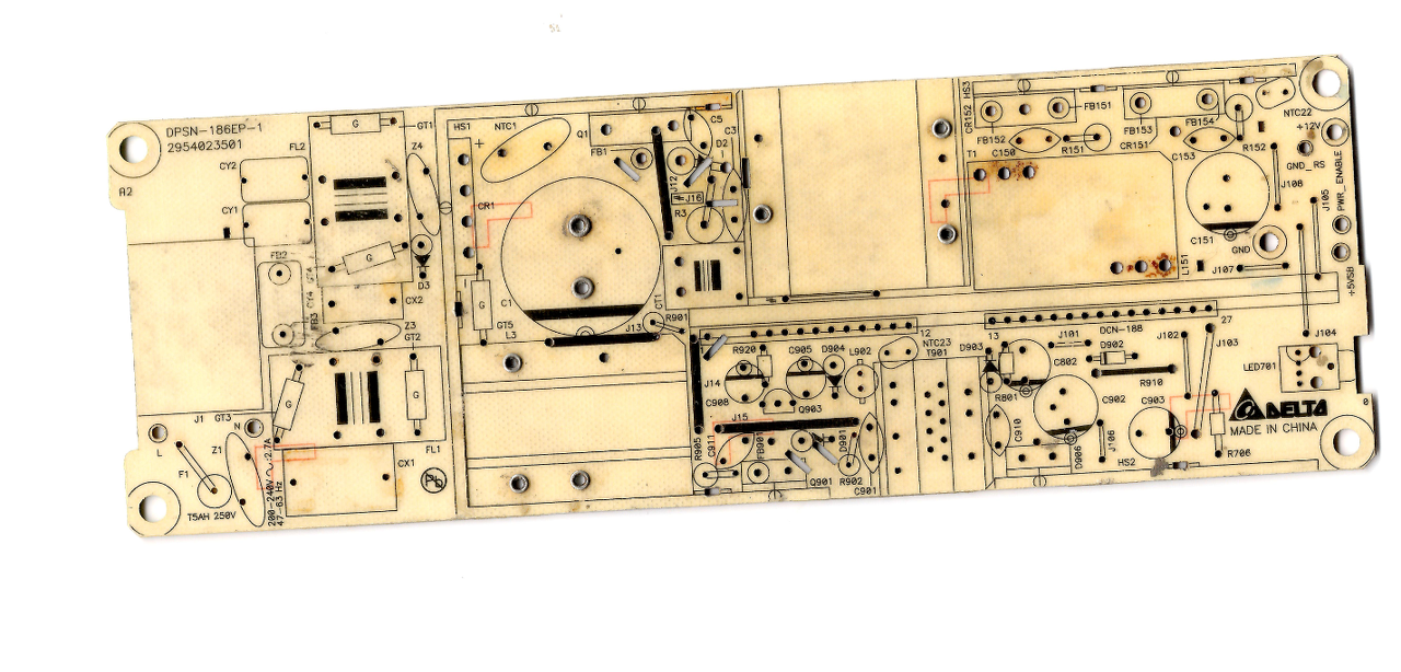 Na egész ezidáig kinn száradtam, és nézegettem, ismerkedtem a táppal, elmesélem mire jutottam, kiderítette,. hogy a képen jobbról balra nézve, a bal szélen van egy egyenirányító, szűrő rész, és valamit szabályoz is a nyers 300V DC-n, innen kerül a táp második paneljára a DC fesz, ezen a panelon található a kapcsoló fet, az ezt vezérlő IC , a trafó, ez után a szokásos diódák pufferek, illetve itt lakik a segédtáp is, ami teljesen jó.