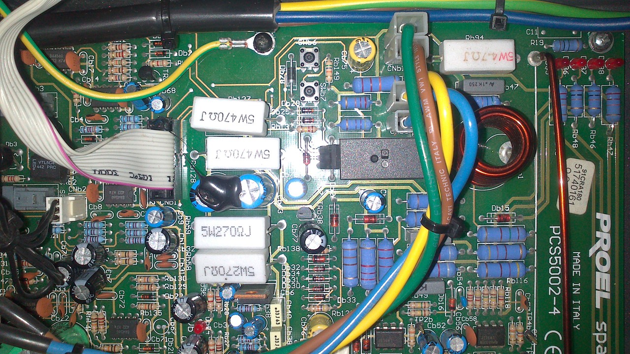 Találkoztatok már Proel PSW 1800-as végfokkal? Kezem alá került egy. Az egyik oldala zárlatban volt. Kicseréltem a végtranzisztorokat (FJL4315/FJL4215). Bekapcsoltam, jelet adtam neki és szól. Viszont a clip LED egy bizonyos hangerő után elkezd égni és kezd torzulni a zene. A másik oldalon viszont még csak a signal LED villog ugyanekkora bemenő jelnél. Van ötletetek mi lehet a gond? Esetleg mi az a pár mikro kapcsoló a nyákon? Segítségeteket előre is köszönöm! Üdv