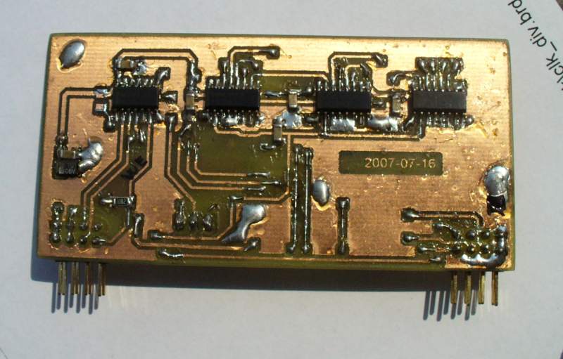 Hazakerült a fényképezőgép, felrakom a képet az osztópanelról. A felső oldalon látható az utólag beépített 74HC14-es inverter.