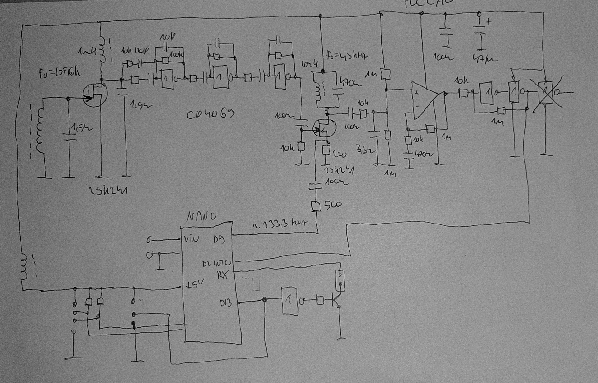 Már majdnem műkodik a hga22 vevő, a keverő JFET-es lett mondössze -6db veszteséggel. A keverő utáni fokozat egy lassú CMOS műveleti erősítő mert a szokásos CD4069 folozat a keverési melléktermékeket jobban erősítette mint a hasznos jelet, a komparátor már CMOS inverter mert a műveleti erősítőt ha a két fokozatot egymás után kötök torz jel jött ki.
