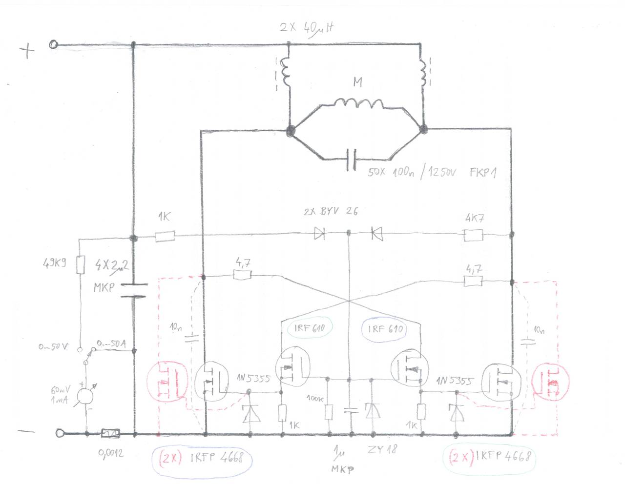 Itt a rajz, jelenleg nincs benne a 2 pirossal jelölt FET, de amint mindent sikerül gatyábarázni beleteszem.