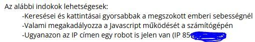 Képmetszővel másoltam le azt amit láttam (allegro-t böngészve). De egy idő után már beengedett újra. De hogy azon a "címen egy robot is van"...vagy engem hittek robotnak, mert több weboldalon is kutattam egy termék után?