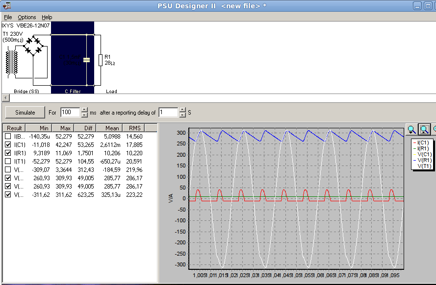 De az elkóról és az ideális trafóáttételről jut eszembe, hogy a tápban lévő 3x470 µF-ba bele sem gondoltam mekkora búgófeszültséget jelent 3 kW körüli teljesítménynél: - közel ideális hálózati feszültséget feltételezünk. - kimenő áram és feszültség 10,2 A 286 V effektív - A minimális kimenő feszültségvölgyek 261 V-osak Ha ráadásul a hálózat feszültsége is leesik valamelyest, vagy egyes vidékeken meg sincs mindig a 230V. akkor további tápfeszültség csökkenéssel kell számolni. Továbbá alapvetés hogy a hegesztőáram nem szakadhat meg periodikusan a tápfeszültség 100 Hz-es hullámzásával, ezért talán nem véletlen hogy nem látni 3-3,5-ös áttételnél nagyobbat.