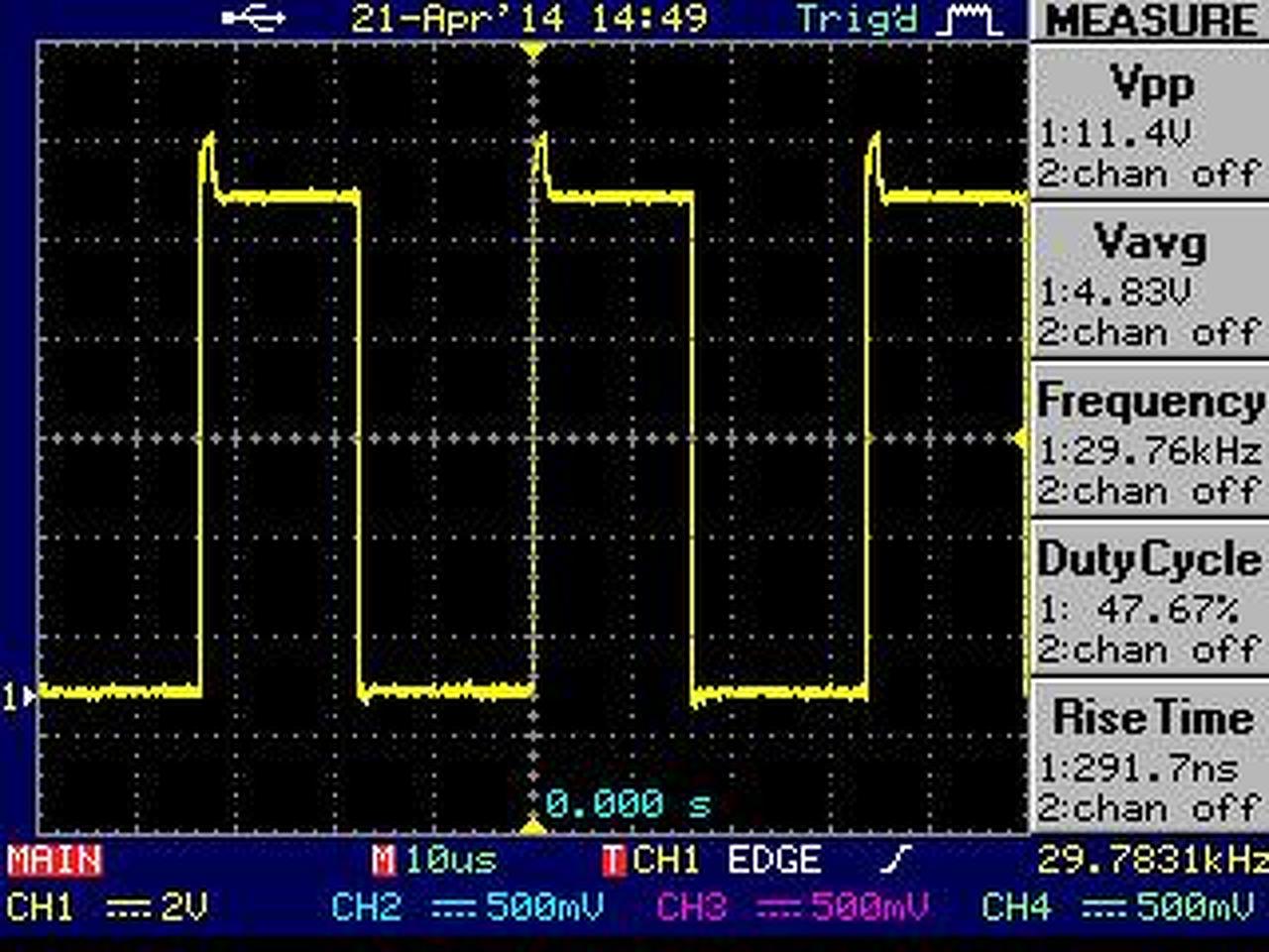 Talán meg van mi a gond. Mivel még csak kisérletezek szedett vedett feteket raktam bele. Mivel nem egyforma sebrsséggel kapcsolnak így lehet rajta tüske meg nem egyforma a jel. Szkóppal néztem. Ha megjönnek az igbtk akkor többet tudunk.