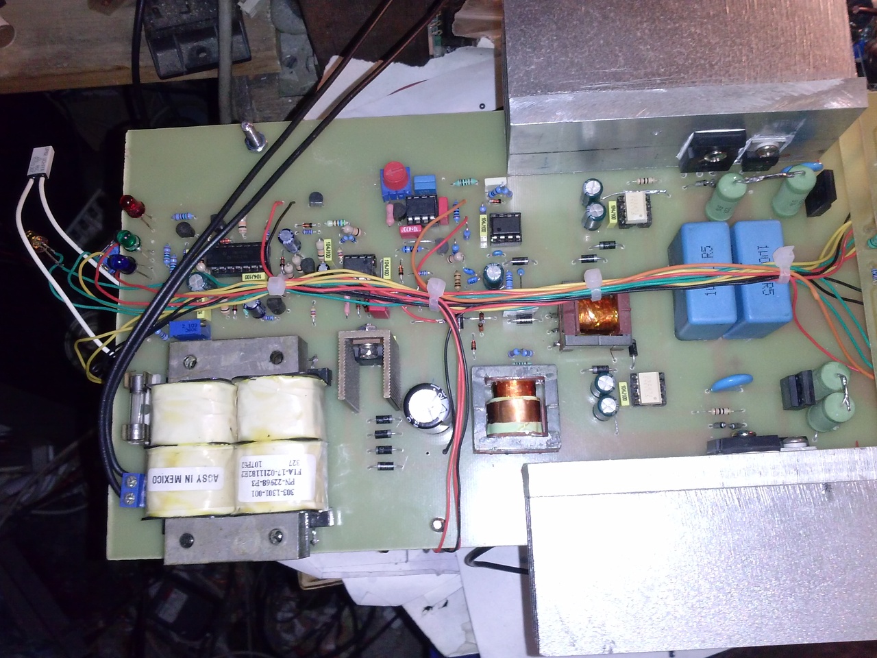 Kész lett a MMA TIG-es gépem is,mivel közben egy macit is összedobtam.Pár kép róla,bekapcsolt állapotba elfelejtettem lekapni,üresjárati fesz 80V,freki 50KHz.A nagyfesz gyujtás nem az erederi rajz szerinti,az is működik csak nekem volt egy javíthatatlan nagyfeszgyujtásos gépem és arra építettem rá a vezérlést.