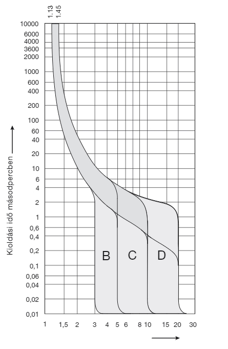 Nem egészen. Csatolok egy ábrát amin az y tengelyen ott van az idő, az x tengelyen pedig a szorzó. Ezen szépen látszik (ha nem is konkrét méréseken alapul), hogy kb. 15-25%-kal gyakorlatilag a végtelenségig túlterhelhető (ez egyben saját tapasztalatom is). Egy átlagos varrat (nálam itthon) néhány másodperc, de legyen kétszer annyi, arra az időre kétszeres a szorzó, tehát 32A is átmegy a 16-os megszakítón anélkül hogy leoldana.