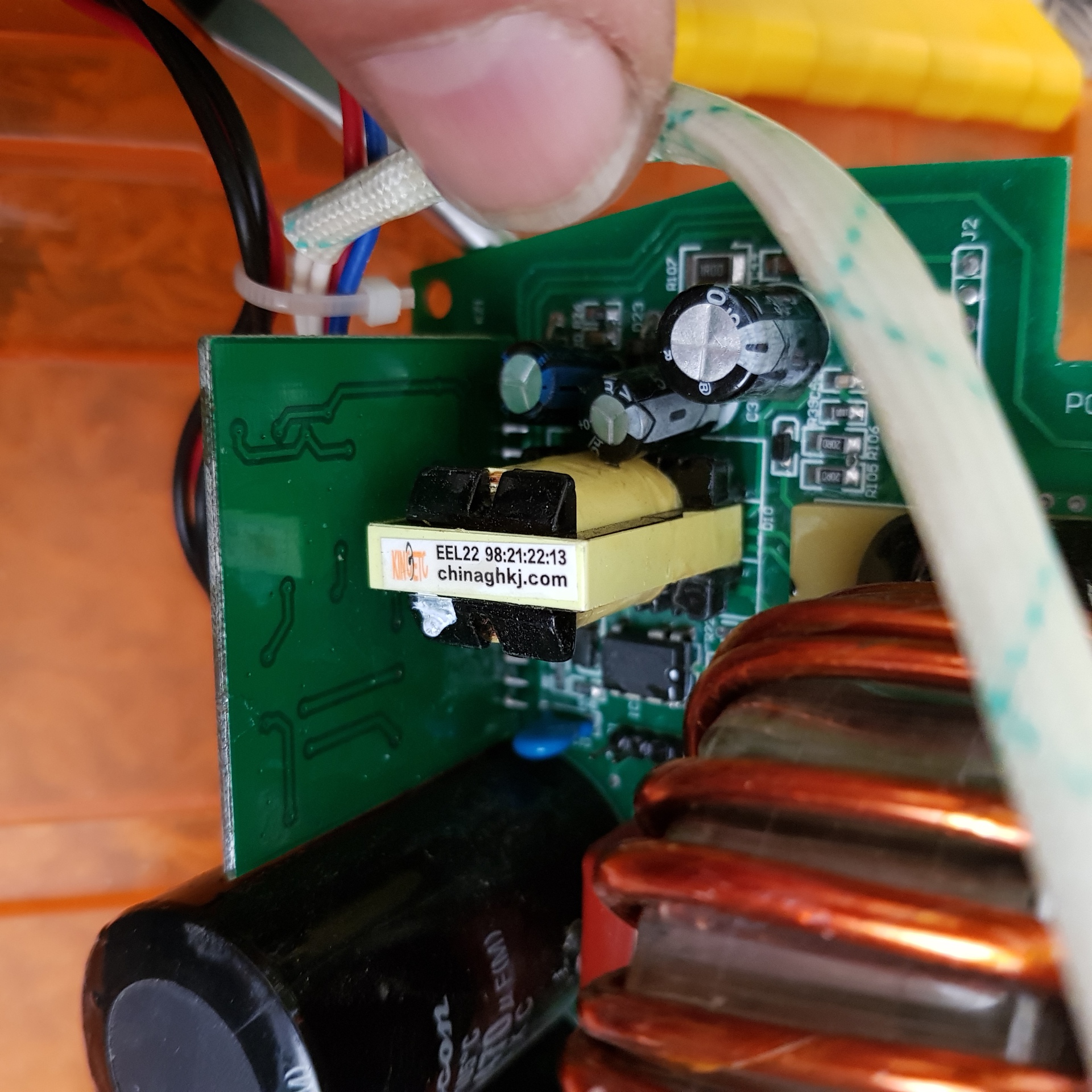 Teszek fel ket kepet a problemas alkatreszekröl. A kepen jol latszik az EE trafo es elötte az AC-DC konverter.