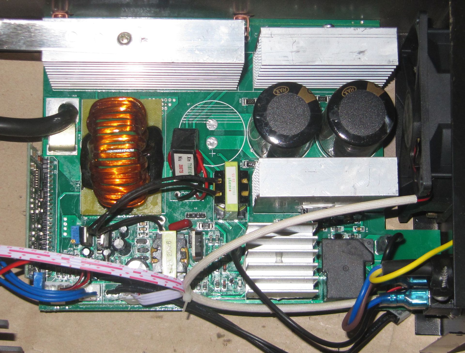 Mint feljebb irtam, hogy hozzam került 1 Stomo SW-295.-ös inverter. Megerkezett az alaktresz hozza pontosabban az LNK626PG AC/DC konverter. Nagyon rossz helyen van elhelyezve es a tokot is kisoroltak belölle. Kivettem a kovvertert, tettem bele egy foglalatot amibe beleillesztettem a konvertert, de elötte ramertem az S es a D labakon ott van-e a 310 Volt. Ez persze meg volt, majd a konvertert hehyeztem be, es inditas. Elsöre müködött. Több alkalommal be ki kapcsoltam minden problema nelkül. Köszönöm az ötleteket es a tanacsokat. Egy kep müködes közben. Köszönöm meg egyszer mindenkinek. Üdv.: Gabor