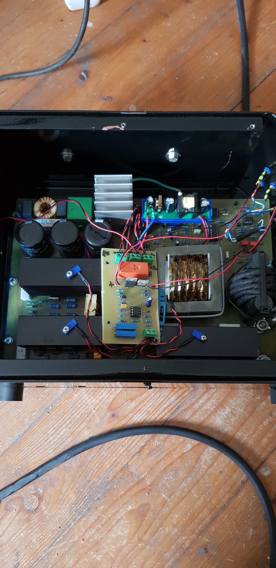 Igen, az igbt ken sincs még hűtöborda,hiába melette a kábel heg próba még nem lehetett.Én anélkül nem mondom hogy kész a gép.Van itt a műhelyemben három pc táp dobozba szerelt,még nem hegeszettem velük a tető sincs rajtuk.Vagyis nincsenek készen.