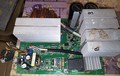 Lehet hogy tényleg a borda kicsi. Nagyobbat sajnos nem tudok be tenni,mert csak jóval nagyobb bordáim vannak, azok meg nem férnek be. A bemenő feszültség 25v, a kimenő meg 15,3v. Ha csak 200mA a terhelés,bár azt nem mértem, akkor is 2W-ot fűt. Az meg szerintem már elég meleg. Megpróbálok valami belevaló nagyobb bordát keresni emez helyett. A kondin por látszik csak, mikor az IGBT-ket mértem, akkor kiszedtem a bordákat is, de semmi más elváltozást nem találtam még a környékén sem.