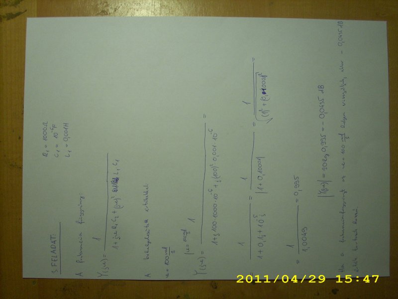 A behelyettesítést w=100 rad/sec sikerült megcsinálnom. De a Ta és Tb kiszámítása sehogy sem akar kijönni, ahogy neked. Illetve ha kijön az egyik, a másik már nem lesz a Tiéddel azonos. Mi lehet a baj? Ha meghatároztam a 2 töréspontot , ugye a közelítő Bode -diagramhoz meg kell határozni a decibel és a szög értékeket . Megpróbáltam már, de nagyon rossz eredmények jönnek ki. Valamilyen segítséget tudnál adni?