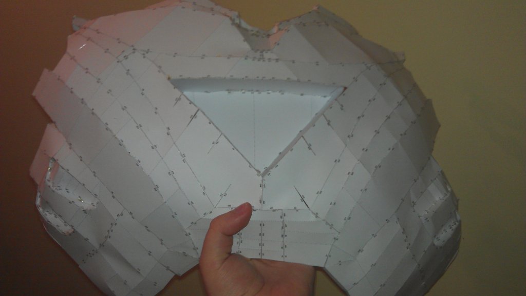 Semmi high-tech cucc, csak egy jelmez lesz. A Youtube-on van egy videósorozat, amelyben nagyjából elmondják, hogy mit-hogyan kell elkészíteni, de a nagy része a te dolgod. Kis kézügyesség nem árt. Egy webes tárhelyre fel van töltve egy rakás sablon, amiket ki kell nyomtatni, legalább 160 g-os lapra. Kivágod, összeragasztod. Itt jön az érdekes része, mert be kell vonni üvegszállal. Pöcsölős és nem egyszerű munka, de az eredmény teljesen egyedi, és tökéletes jelmez. Ma délután a mellpajzsot készítettem el, csak a kivágásig jutottam, mert elfogyott a ragasztópisztolyomból a patron, és a jó Teszkóban sem volt. Ha érdekel valakit, szívesen megosztom ezeket az oldalakat, valamint azt is, hogy én melyik változatokat készítem.