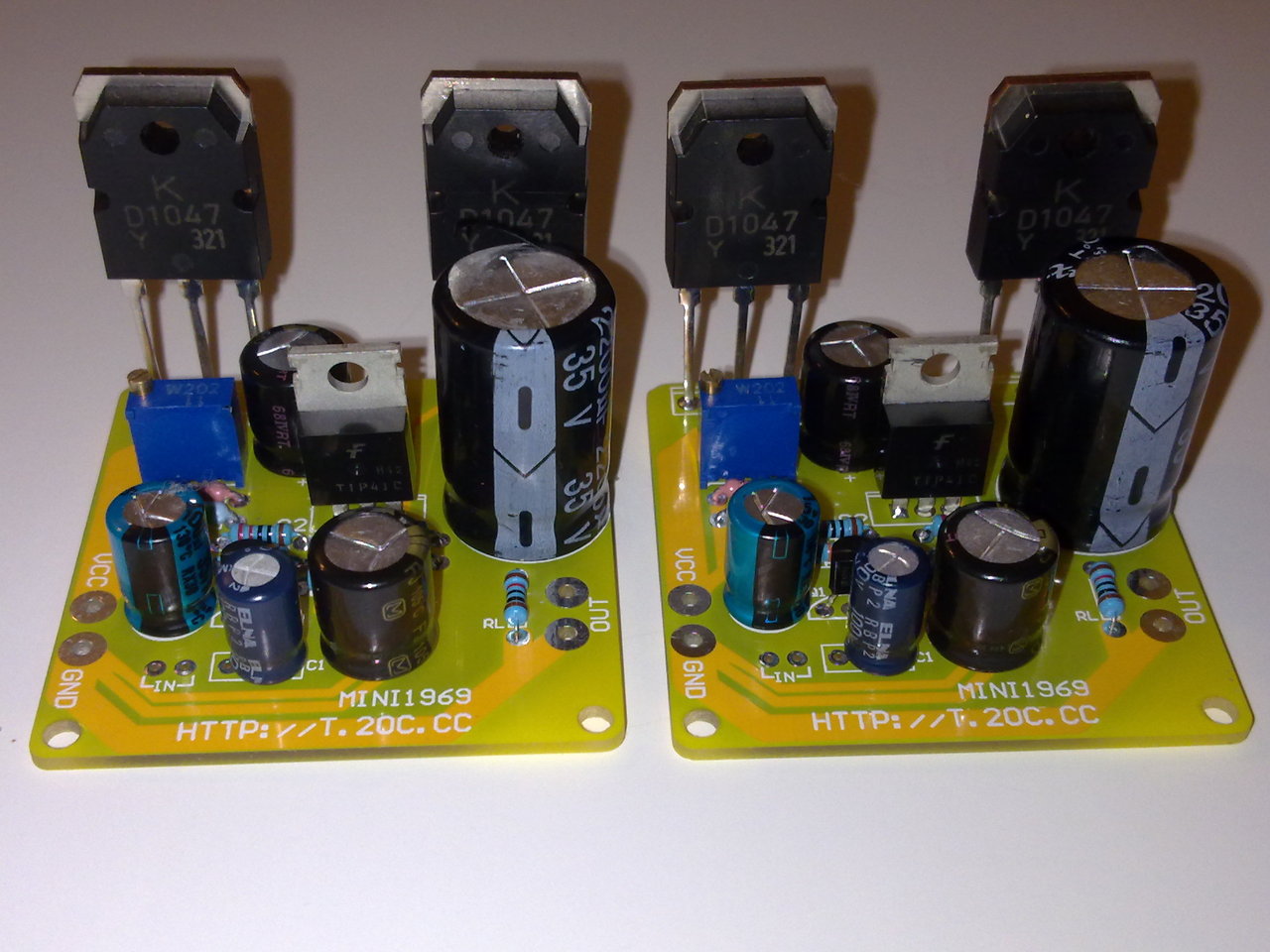 Régebben is össze akartam ezt az erősítőt rakni, viszont valami oknál fogva sose épült meg... Most berendeltem külföldről mert olcsó volt a "mini" 3W-os változatát, amit fel is húztam 2 ellenállás cseréjével az eredeti állapotába. Kipróbálni még nem volt időm sajnos..... Végtranzisztoroknak TIP41-et akartak belerakatni, a jelenleg benne lévő végtranzisztorok a Quad405 építéséből megmaradt darabok.