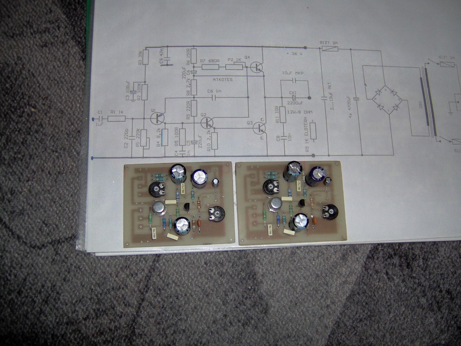 Az egyik megy a másik nem, valami rosz benne, valószinü a bemenő Tranyó meghalt, de nem tudok rajta feszt állítani. A mugy a kis Sharp próbahangfalam mintha uj életre kelt volna . elsőnek tetszik, és van benne erő tényleg, nem esett ösze magassab hangon sem, Jajj de hogy fütt.. Kicsi lesz a borda, simán volt 60 fok nekem is, 45 volt 1.3 Amper.( nem tudtamm kissebet beállítani,) Ujra lesz csinálva a nyák mert megérdemli, Én megnéztem amikor beraktam de nagyon biztam az Ágoston könyvében :no: