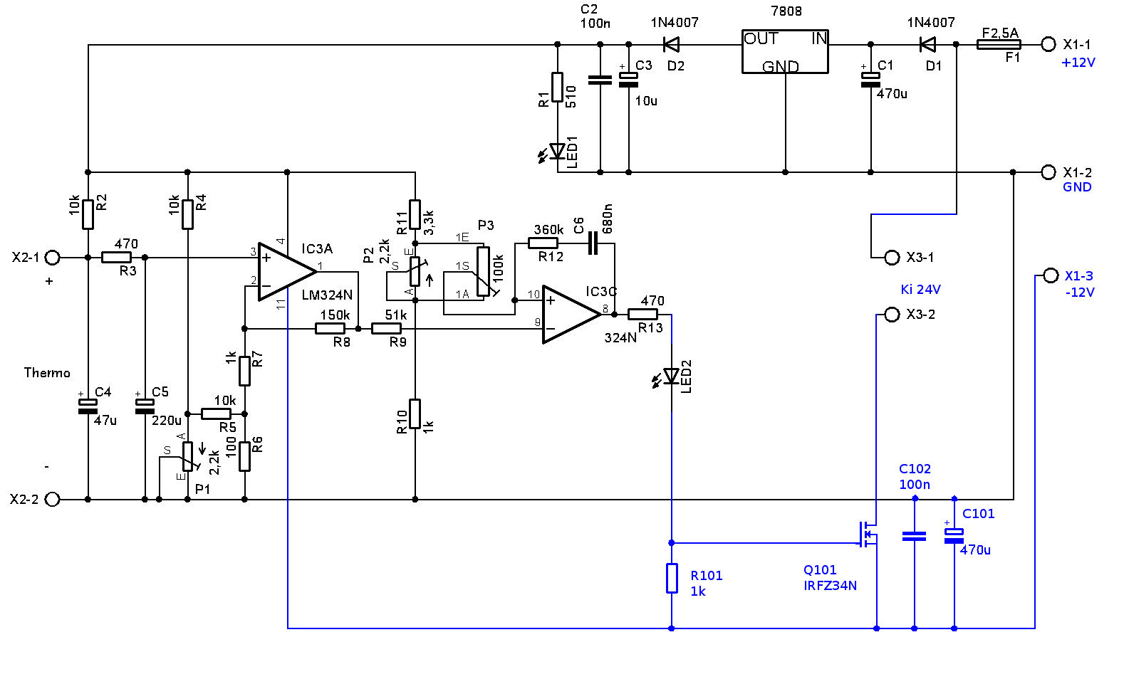A múltkor felmerült egy ismerősömben, hogy ATX tápegységről hogyan lehetne egy egyszerű, analóg áramkörrel szabályozható hőmérsékletű pákát építeni (nem PIC-es vezérlésűt). Az itt pár hozzászólással korábban betett rajzba belejavítottam, hogy szerintem hogyan kellene felépíteni egy ilyet. Nézzétek meg, ha találtok benne hibát, akkor jelezzétek! Ha esetleg valakinek lenne kedve, ki is próbálhatná a gyakorlatban is.