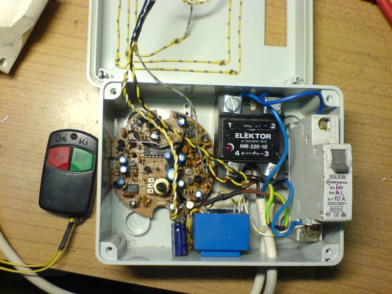 Íme a következő a házi szemét telepből összeállított igen hasznos "nagy"teljesítményű táv kapcsoló kimustrált AUTÓRIASZTÓBÓL a kis megszakító cseréjével és egy 2.5-es tápkábellel akár 5kw is kapcsolható de én csak 2000wattig használtam kerti szivattyúhoz de ezt a doboz tetejébe "barkácsolt keret antennával száz méterről kapcsolta.
