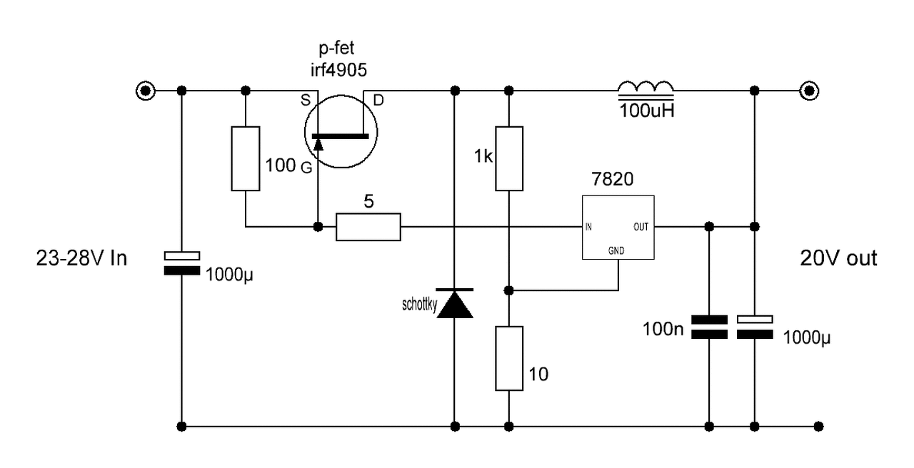kamionos laptop töltö. 24v rol 20 ra. az induktivitás sárga mag. pc tápbol kitermelhetö. kb 20 menet 1mm cuz drotbol. ha más feszültség kell pl19V akkor a stabil tokot kell kicserálni a megfelelö feszültségüre. pl 7818 plusz egy dioda a talpára. az egész beépithetö egy kis 220/12v adapter dobozába. a fetet el kell látni egy néhány cm2 hütöfelülettel. persze a dobozt ki kell furkálni hogy szellözzön.