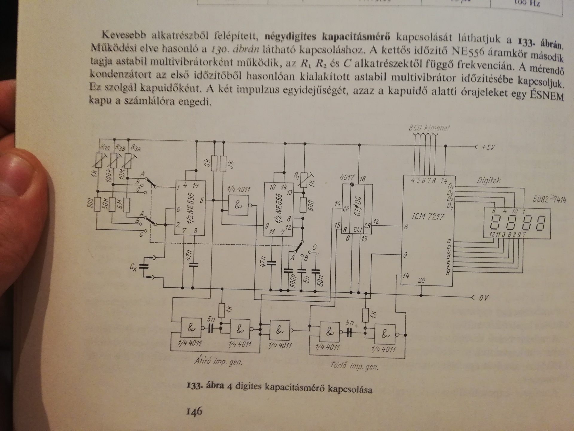 A Hobby Eletronika 1990. decemberi számában van egy kapacitásmérő (képen látható) amit szeretnék megépíteni. A kérdésem az, hogy hol tudok ehhez a kapcsoláshoz analóg kapacitív mérőt venni, vagy ha nem lehet ilyet beszerezni, akkor mivel tudnál helyettesíteni?