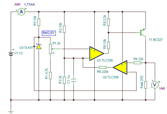 Visszatérve a kapcsolásra; nem variálni, változtatgatni, ötletelgetni szeretnék, hanem a célomat elérni, azaz, hogy 10,5V-nál a relé elengedjen (bizony pár hsz.-el visszább benéztem a dolgot).