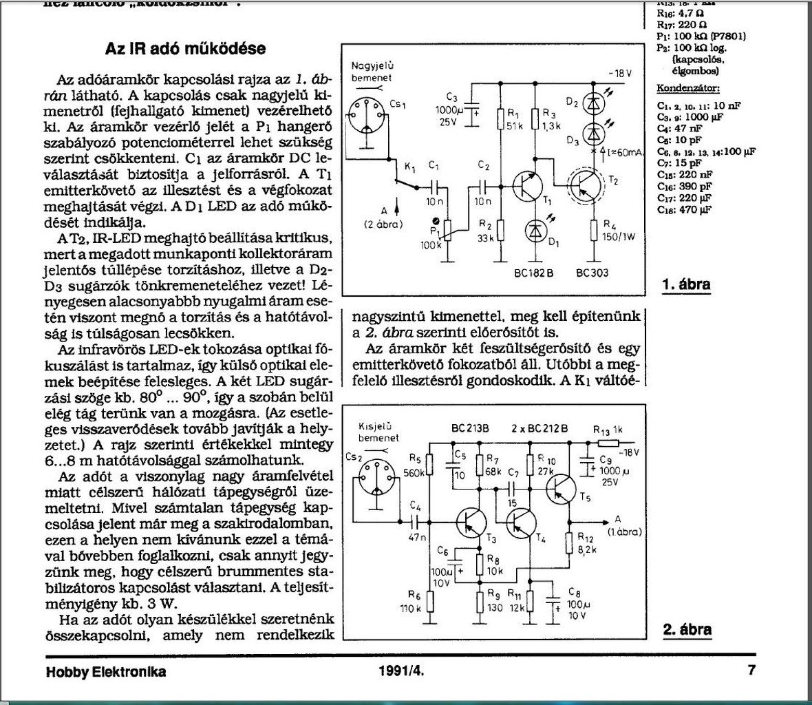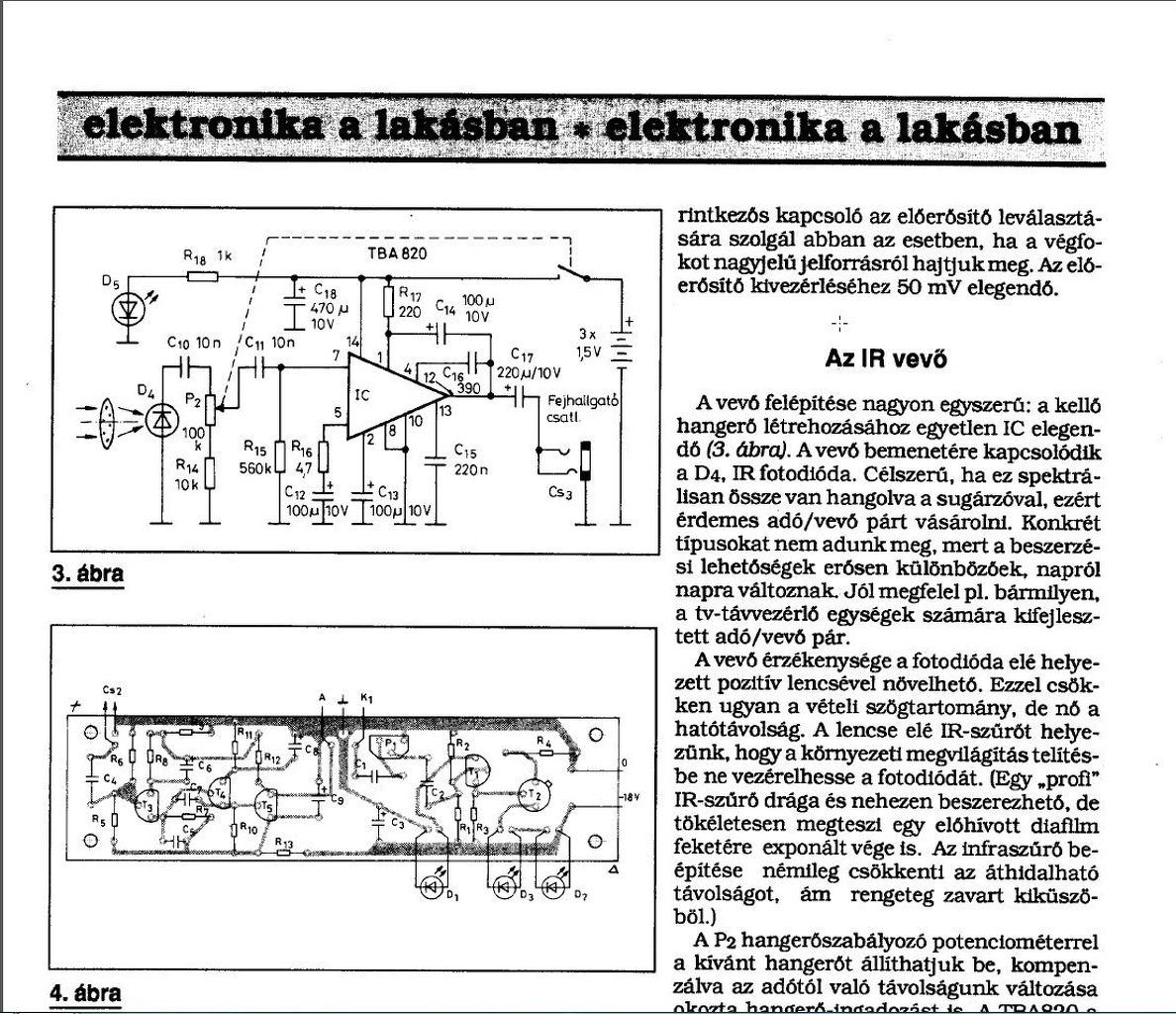 Olyan infra adó-vevő párost keresek ami hang továbbítására képes és a vevő része tartalmaz hangerőszabályzót. Részletesen: A nagypapám elég gyengén hall, a nagymamám viszont még jól hall és nem szeretnék bömböltetni a tévét ezzel másokat zavarva. Az Hobbyelektronika 1991/áprilisi számában van egy cikk ami pont erre a célra használható készülékpárost mutat be, viszont a kapcsolás olyan tranzisztorokat tartalmaz amiket sehol nem lehet már kapni és nem találtam olyat amivel ki lehetne váltani őket. Egy másik fórumban találtam egy kapcsolást ami egyszerűen megépíthető lenne, de nem vagyok biztos benne, hogy ez tartalmaz hangerőszabályzót. A segítségeteket előre is köszönöm!