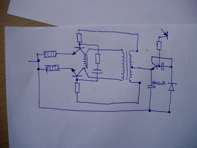 Ne m annyira kókány... nyilván előtte sem volt jó, ha hozzányúltak. Ellenütemű teljesítmény oszcillátor, kevés alkatrésszel, úgyhogy vissza kell rajzolni, félvezetőket megmérni. Közben akár meg is található a hiba.