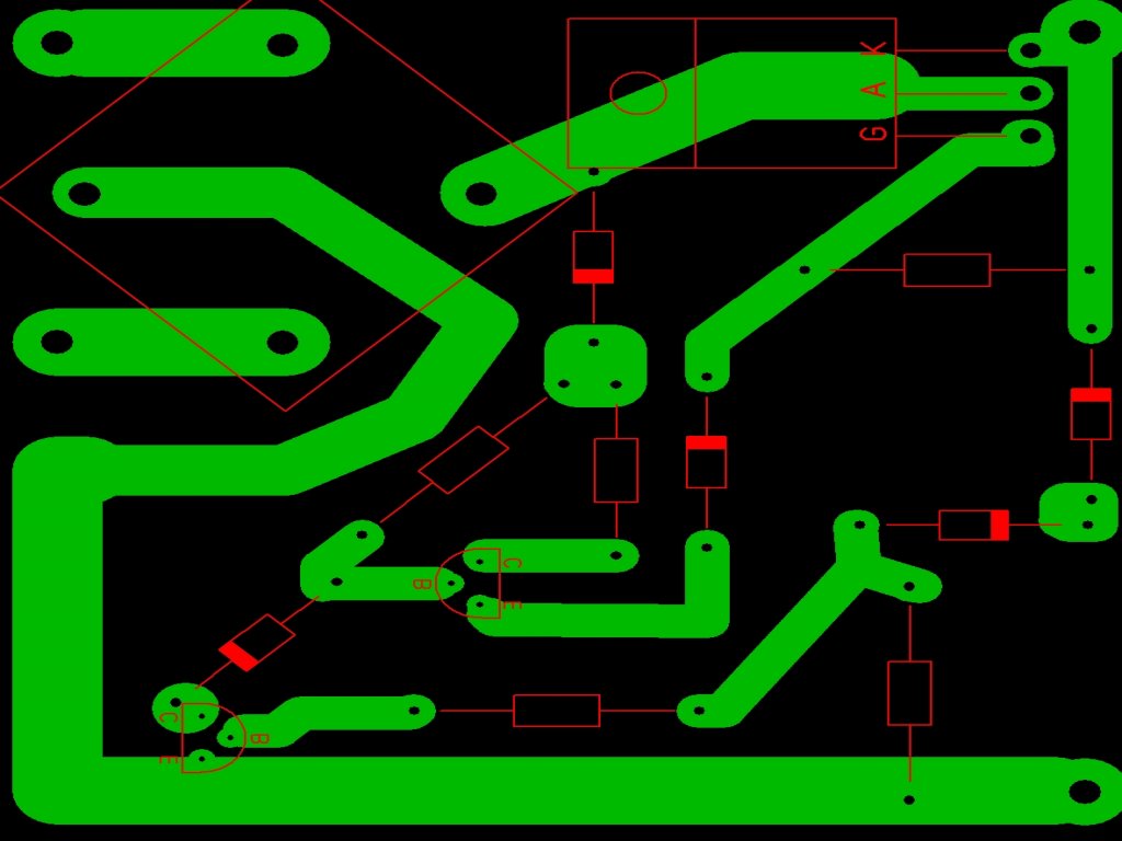 Ha a nyák az alkatrészoldali nézet, akkor a tirisztor forditva van beültetve.