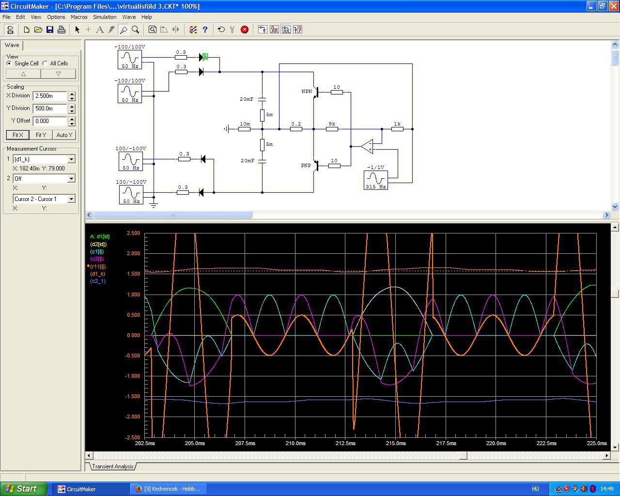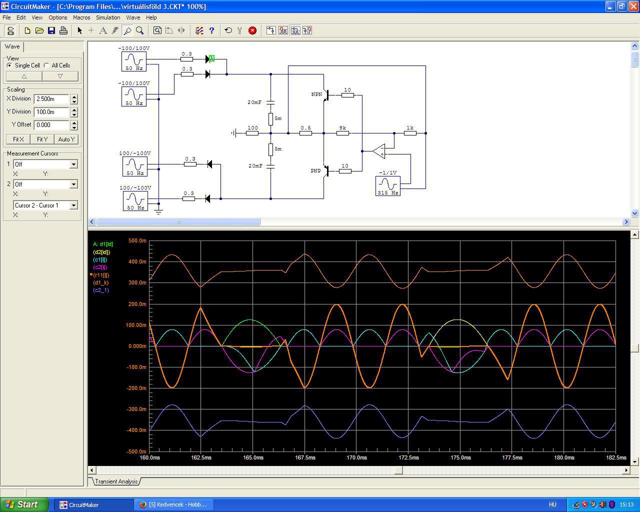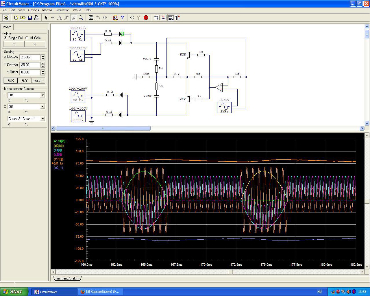 Még "rosszabbul" írtam. Nagy szégyen. De senki nem javított ki. Miért nem? Mi folyik a földvezetéken? Egész nap ezt szimulálom. Az ember azt gondolja, tök egyszerű egy trafó, négy dióda és két kondi viselkedése... de nem az.