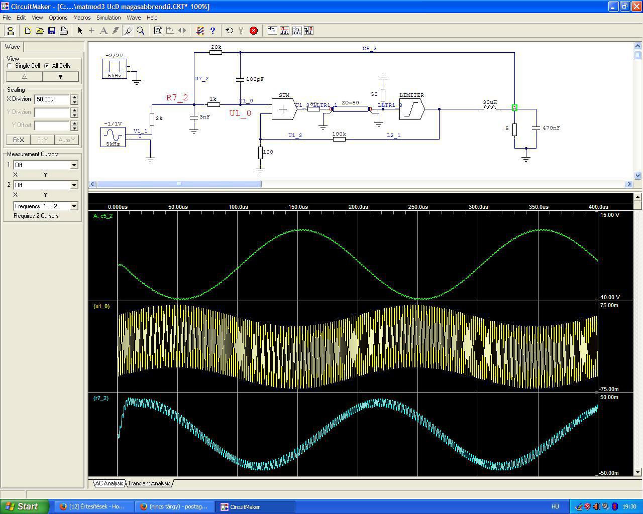 Sajnos a szimulátorok nem tudják megcsinálni a kapcsolóüzemű erősítők AC analízisét. Valamit mutatnak, de ezt nem kell komolyan venni. A tranziens analízis azonban meglehetősen pontos. A visszacsatoló elemek feszültség- és áramviszonyaiból lehet kikövetkeztetni a fázishelyzeteket, ami nem egyszerű, de annál érdekesebb.