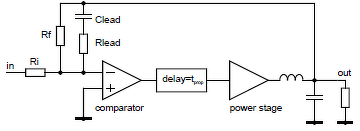 Egyébként most újraolvastam az eredeti 2005-ös írását Bruno-nak és hát jól tettem... Gyakorlatilag benne van a szimulációs problémám megoldása ezzel a "képzeletbeli" háromszögjel behozatalával és tud adni egy linearizált modelt a rendszerről, így már a szimulátorok is tudnak vele mit kezdeni. Bár van benne egy dolog ami nem világos, miszerint az átlag D osztályú erősítőben ugye van egy háromszögjeled, azt összehasonlítod a bementő jellel, az eredmény egy négyszögjel lesz a kimeneten. Na most ugye ennek a képzett négyszögjelnek meg a bemenő háromszögjelnek az amplitúdó hányadosa lesz az erősítés. Itt viszont a háromszögjel a visszacsatolt jelből képzett háromszögjel (ami egyébként ebben az esetben a komparátor bemenetén mért szinusz meredekségéből számolódik a nullátmeneteknél <-- ezt értem), ami korábban a bemenő jel az itt most a föld (?!) és a keletkezett jel mind a két esetben négyszögjel. Na, hogy ez miért jó még érlelődnie kell bennem. Illetve az sem világos, hogy mit nevez G(s)-nek meg H(s)-nek. Meg, hogy mi számít small-signal-nak...