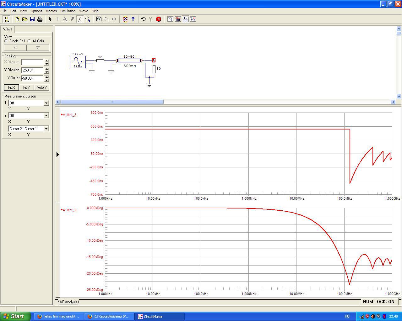 A késleltető művonalra ezt adja ki. A max fáziskésés 23 EZER fok. A Tinában ez, hogy néz ki?