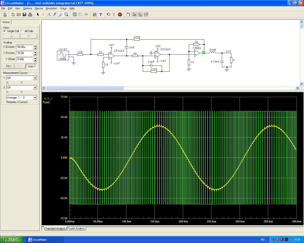 Ami nem jó, hogy nem ez adja a bemeneti jelet, hiszen mi az alapharmónikus feszültségerősítésre vagyunk kíváncsiak. Az alapharmónikust megkapod, ha a Fourier analízisbe beírod, hogy ( input-Fb ), a következő vizsgálat meg a kimeneti fesz Fourier analízise, bár ennek nem sok értelme van, hiszen az egy nagyon kis torzítású jel. Tehát írhatod osztandónak rögtön a kimeneti feszültséget. Ezt az egészet csak én találtam ki, abból kiindulva, hogy van egy különbségképzés ( vagy rendelkezőjel képzés, vagy hibajel képzés ) a bemeneten, utána van némi elektronika, ami ebből a jelből csinálja meg a kimeneti feszültséget. Ehhez kell egy feszültségerősítés, természetesen figyelembe véve a visszacsatolást is ( de azt már tartalmazza az - input-Fb - ). Ezt az erősítést kell valahogy megmérni a szimulátorban. Tehát, ebből a szempontból mindegy, hogy analóg, vagy PWM. Az, hogy van vivőfrekvencia, meg késleltetés, egy működő áramkörben, egy ilyen mérésnél nem játszik szerepet. ( ha az konstans ) Én ezt tekintem nyílthurku erősítésnek, de ez nem biztos, hogy helyes. Ha erről van szó, akkor én erre gondolok. Ezért nem szeretem az elnevezéseket, mert mindenki máshogy gondolhatja. Ha körül van írva, akkor már jó, akkor érthető. A hozzászólás módosítva: Jan 10, 2022
