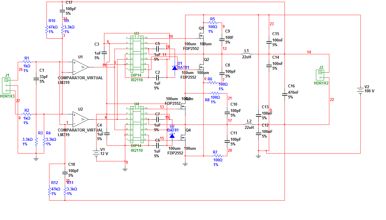 Kiküszöbölése: - Egy frekvenciára hangolod: pl teszel egy trimmerkondit az említett kondi mellé és összehangolod. - Eléggé távol hangolod: úgy csinálod, hogy a frekenciák különbsége nagyobb legyen, min 20kHz, így azt már nem hallod. Mivel általában ilyen nagy teljesítménnyel mélyeket fogsz hajtani, a hagnszóró tekercsének induktivitása még bőven ráad a csillapításra. Ha tudod, hogy mélyet hajtasz vele, akkor a kimeneti szűrőt is érdemes eleve alsóbb frekvenciára tervezni, így még nagyobb csillapítás lesz. A másik, hogy átalakítod a visszacsatolást, korábban belinkeltem egy alapötletet full-bridge, ahol két külön comparátor szerepelt. Lényegében így két, egyszerre rezgő félhidad lesz, ami már biztos nem interferrál.