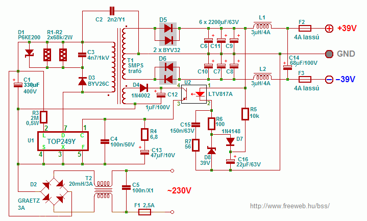vissza olvastam nem csak 2 oldalt de nem találtam csak egy rajzot az is -+39V-os csak de szerintem 900VA nem tud