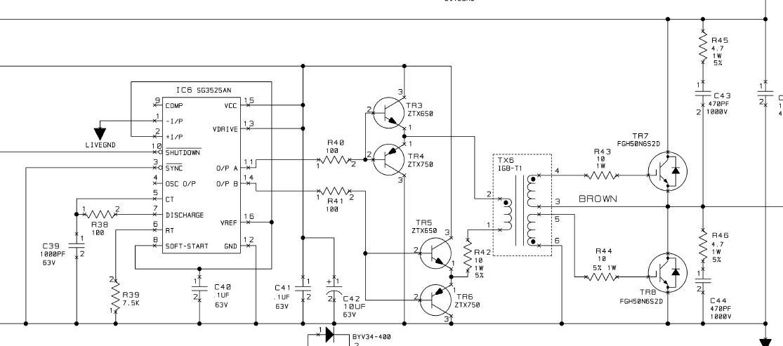 Az első táp 50kHz-en megy, keménykapcsoló. Az utóbbi elbielg 100kHz-en menne, amit biztos nem tud teljesíteni (práhuzmaba kötött IRF840-eket kellene meghajtania). Ráaédsul itt elég veszélyes dolgo van, márt látszatra a szekudneren van egy 12V-os tekercs, ami a priemr oldalt táplálja. Mivel gondolom kezdő vagy, itt pedig kapcsolóüzemű cuccokról van szó, a kapsolás önmagában mindig kevés. nyákterv, és persze trafóleírás szükséges. És mivel általában nehéz beszerezni pont azokat az alkatrészeket (pl ugyanolyan anyagú, méretű trafó), ezért sok mindent neked kell átszámolnod.