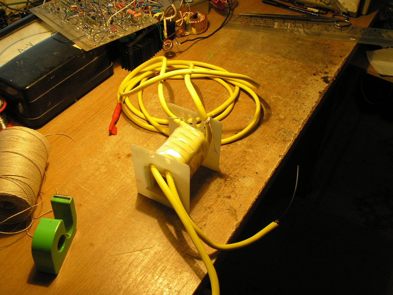 Itt van egy cséve, ez jó nagy ( U120-hoz ) ebben 400 szál 0,2 -es van behúzva egy szilikonkaucsuk csőbe. A következő kép meg megtekerve, bifillárisan .
