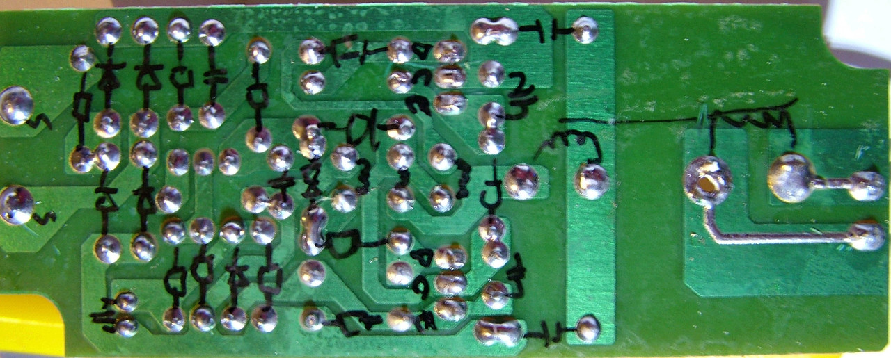 Gyakorlatilag ugyan az az elv, mint Skori önrezgő rezonáns tápja. Van egy soros áram visszacsatolás, ez adja a Gate (vagy bázis) feszültségeket azzal a rezonancia frekvenciával amin a szórótrafó rezeg. A Bázis és ez Emitter között feltételezésem szerint azért van kihagyva 2-2 furat, mert oda jönne a Gate kapacitást kisütő dióda ha FET-et alkalmaznak kapcsolóelemként.