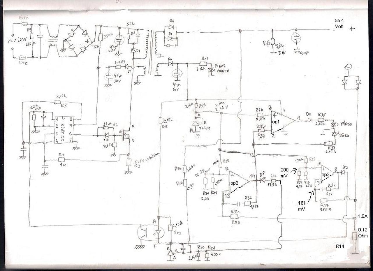 Köszi! A búgó áram alatt mit értesz? Kisülés-feltöltődés?Azért is kérdezem,mert volt egyszer egy akksitöltőm(zselés akksira,),és abban is felrobbant a szekunder oldal kimenetén lévő puffer kondi.Itt egy rajz. Nem konkrétan erről a töltőről van szó,de hasonló az is. A szekunder kimenet pedig szinte ugyanaz. Tehát itt az 55.4 Voltos kimenetnél lévő 470 mikroF-os kondiról van szó. Van-e ötleted,hogy mitől robbanhatott fel? Mikor kicseréltem akkor pedig nem világítottak a Led-ek, csak bekapcsoláskor,és kikapcsoláskor egy pattanás hallatszott. Tehát érdekelne,hogy mitől robbanhatott szét,vagy hogy hogyan tudnám megállapítani a hibát? Üdv! Tibor
