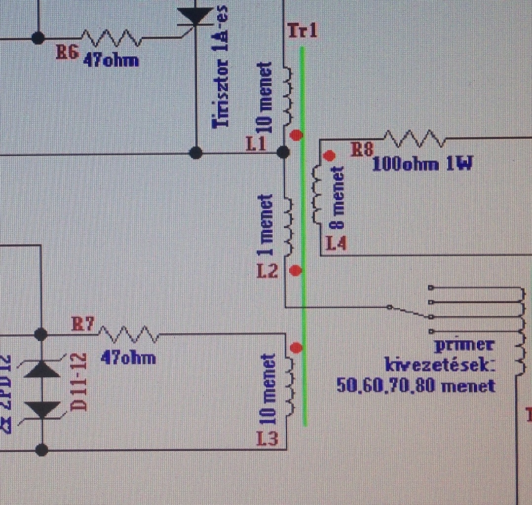A gate-k tekercsei igen. De miután ebben feszültség- és áramvisszacsatolás is van, mindegyik kivezetésnek meg van a saját bekötési módja.
