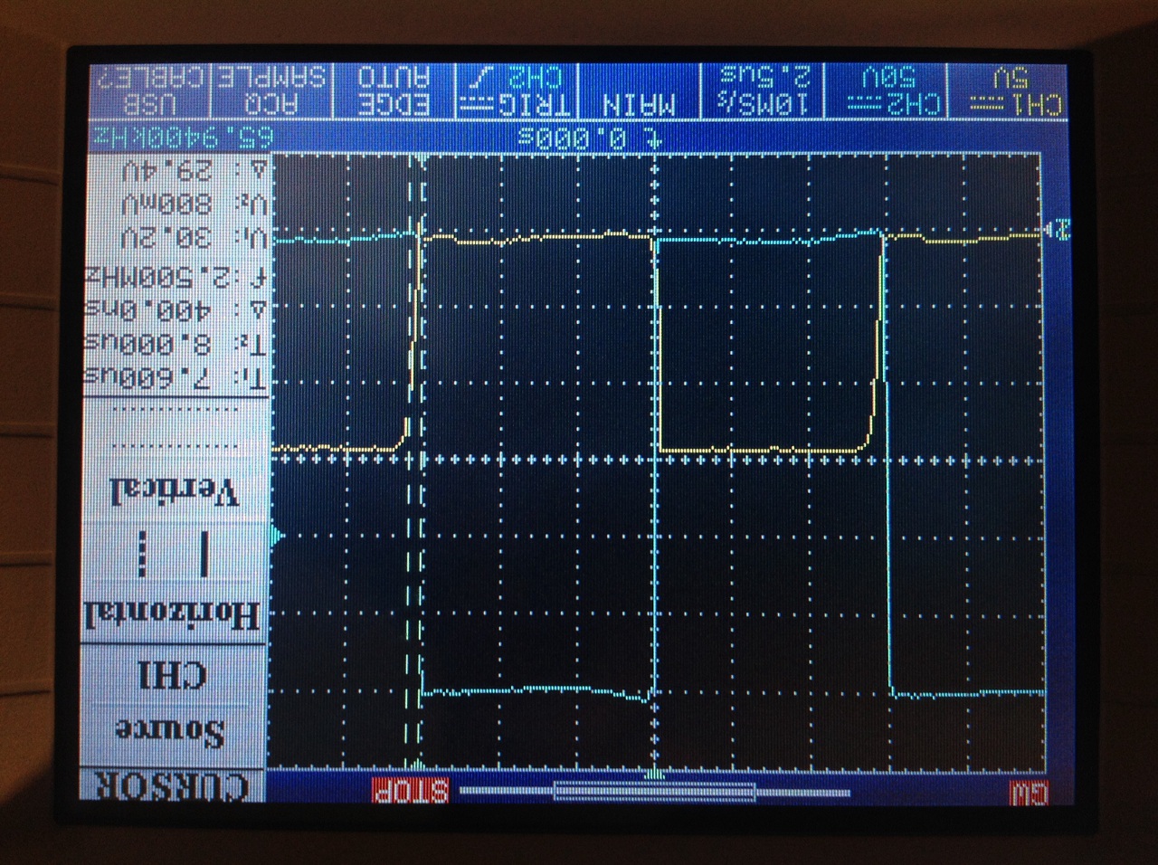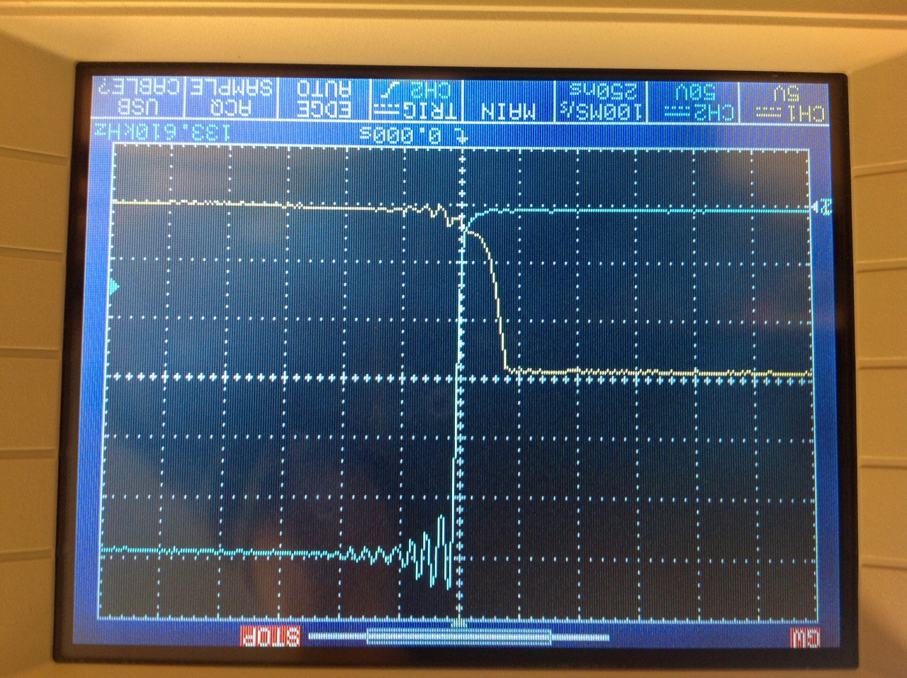 Miért van fejjel lefelé a szkóp kép? Rosszul töltötte fel ez a tab?! Invertálni kellene? Az AC táp 230 V x 2.2 A = 500 W megy be és 400 W jön ki. Hatásfok csak 80%. Ez biztos mert mérem. 15 A Peak áram nem tökéletes szinusz formán. A mosfet 0.2 Ohm RDSon ellenállása 10 A- nél elvileg bekapcsolja az IC túláram értékelőjét, és gyakorlatilag is, mivel egy picivel fentebb megy az áram már be is kapcsol a védelem 2 V feszültségnél. Tehát jelenlegi felállásban ekkora hatásfok mellett nem tudok fentebb menni 400 W -tól. Csak akkor fogok betenni nagyobb meghajtást és fetet ha trafót sikerül méretezni.
