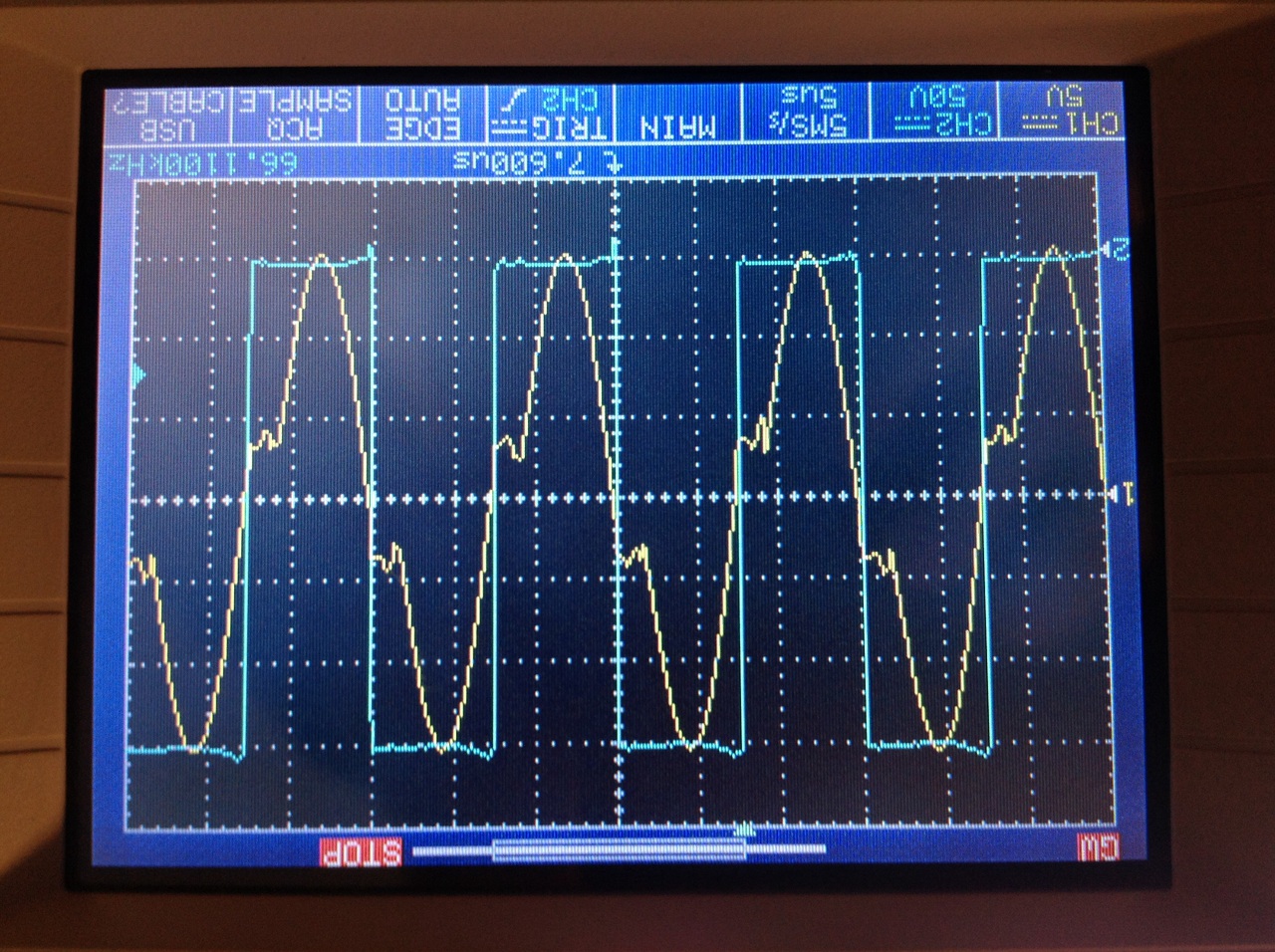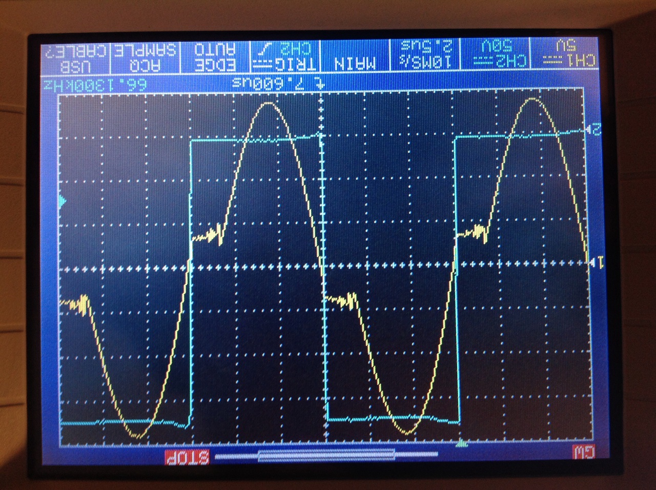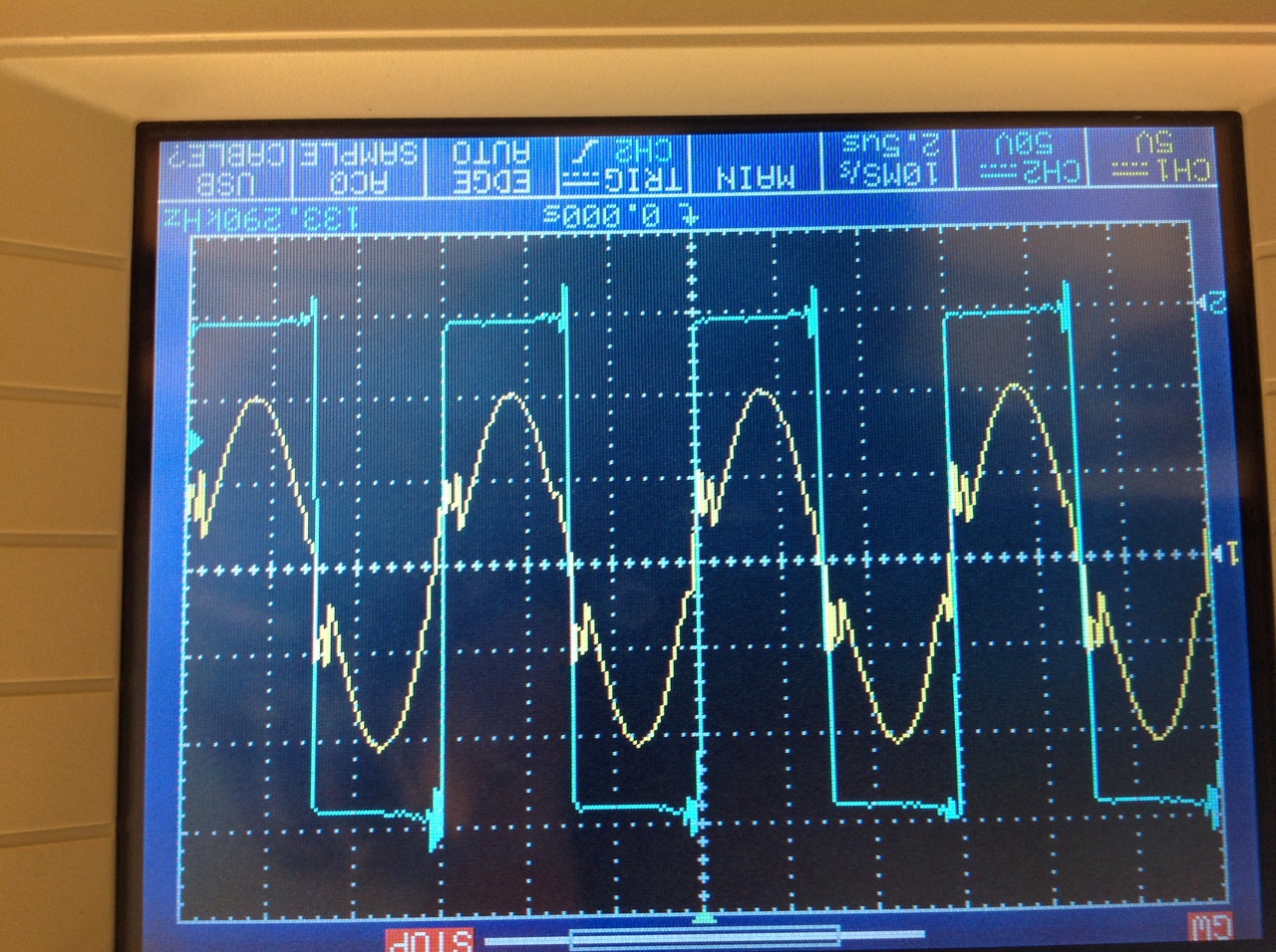 Idézet: „a mágnesező induktivitás nagyon kicsi” Ez miből látszik? Csak, hogy tanuljak is valamit. Idézet: „PF értéket szinuszos terhelés esetén 1-nek vettem. Ha már rezonáns. De jut eszembe, van teljesítmény mérő műszerem is, ami számol a cos Fí -vel. ” Az oké hogy a trafón ugye szinusz áram folyik. De ettől még az egyenirányítás miatt a hálózati 230V-ból szép kis tüskékben veszi fel az áramot. Idézet: „Azért nem válaszolok egyelőre az induktivitás értékére, mert azóta le lett véve a menetszám, mert kérték, hogy úgy is nézzem meg mit mutat.” Légréssel biztos nem korrigáltál, mert a félhíd áttöltődési időkön látom, hogy a mágnesező áram megugrott. Ezt mutatják a belengések is.