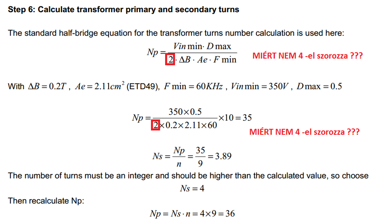 Lenne egy olyan kérdésem, hogy az IRS27951 APP NOTE-ban a primer számításánál miért 2-vel szoroz a nevezőben?