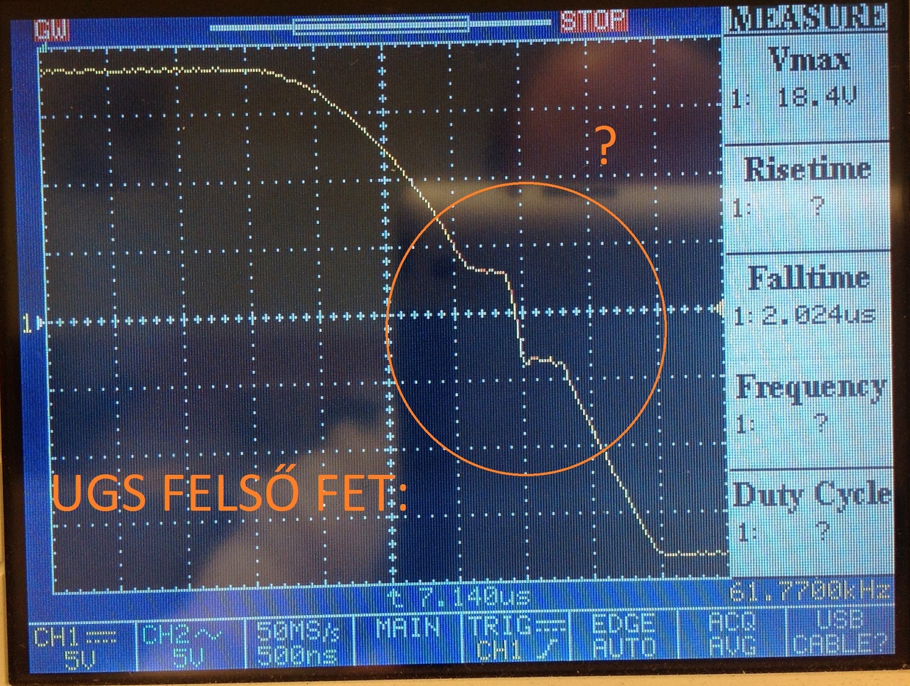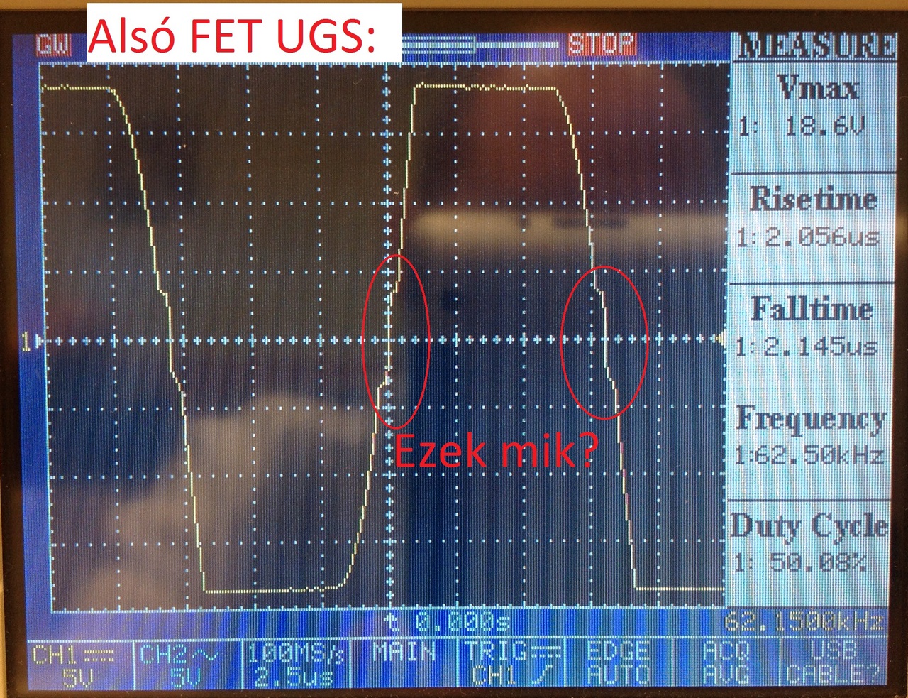 Önrezgő félhídja, az alsó FET UDS-en mérve.