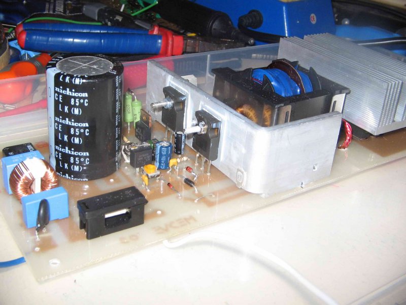 Egyébként ez is szép munka, milyen ETD mag van benne? 49-es? És a fetek mekkorák? Majd ha sikerül beállitani, ird meg mekkora a max teljesítmény. Üdv.