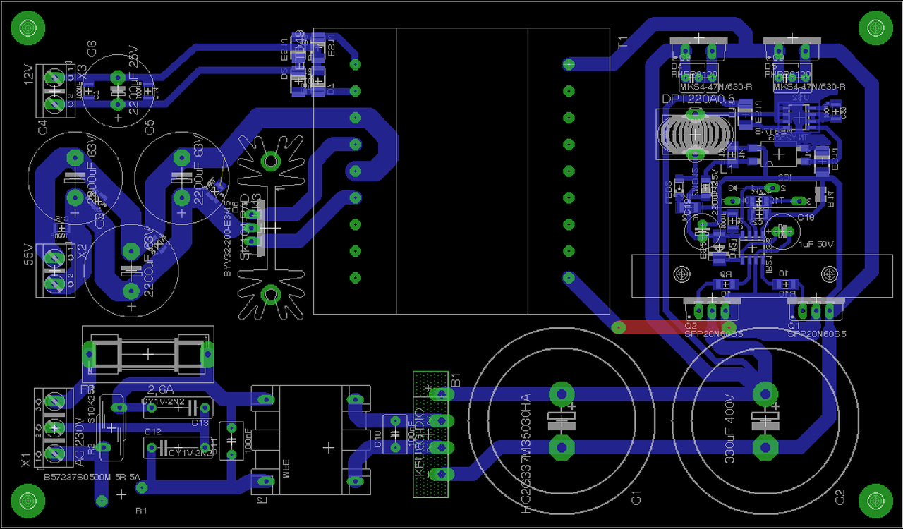 Igen, az átkötéseket nem szeretem, így sajnos messze került. Mivel nincs tapasztalatom SMPS nyák tervezésben, nem tudom, hogy ez jó-e így, és a többiről sem.