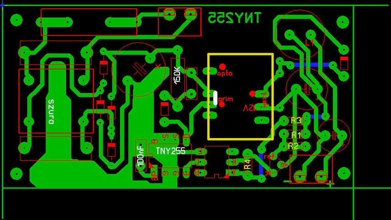 A primer-szekunder közé mindenképpen kell egy Y kondi, anélkül olyan zavar lesz a kimeneten hogy ihaj. A TNY255 (ez még mindig olcsó a lomexben) egészségesen 4,5W-tal terhelhető hűtés nélkül, ekkor a tokja 42 fokra melegszik.
