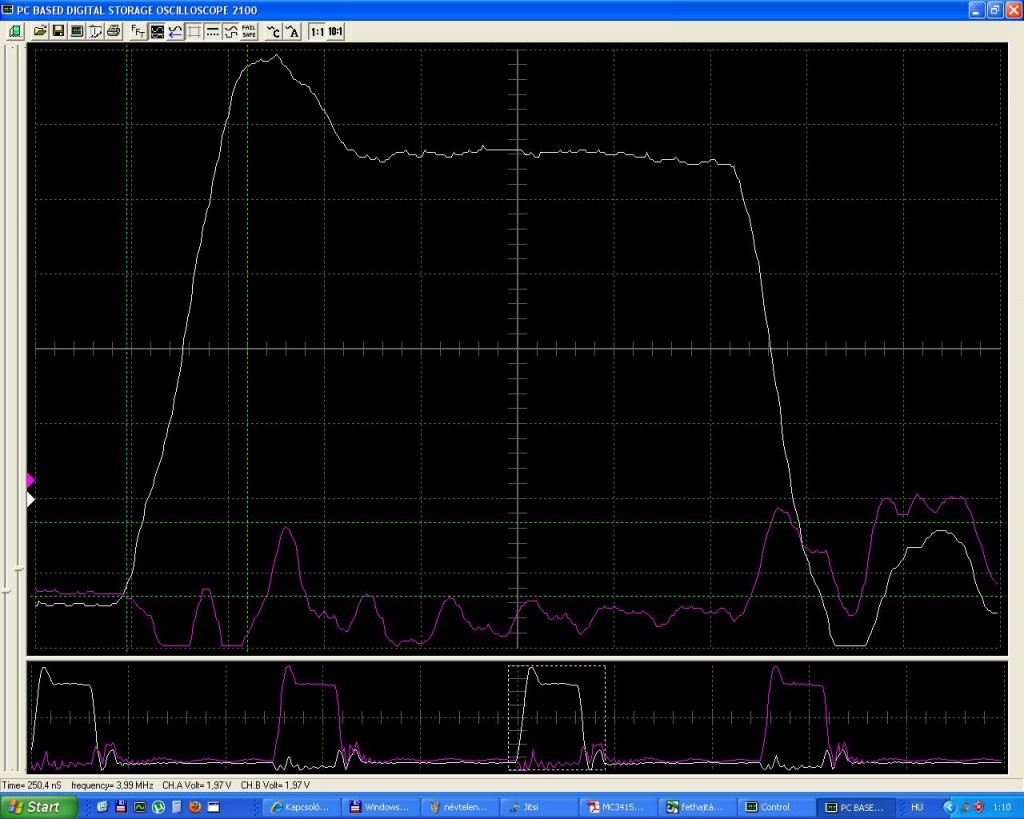 Ezzel a fokozattal pici javulás tapasztalható, és a gate jel teteje is csillapodott. A fokozat kimenetén van két shotky a táp, és a tset felé, gondolom ennek köszönhetően.
