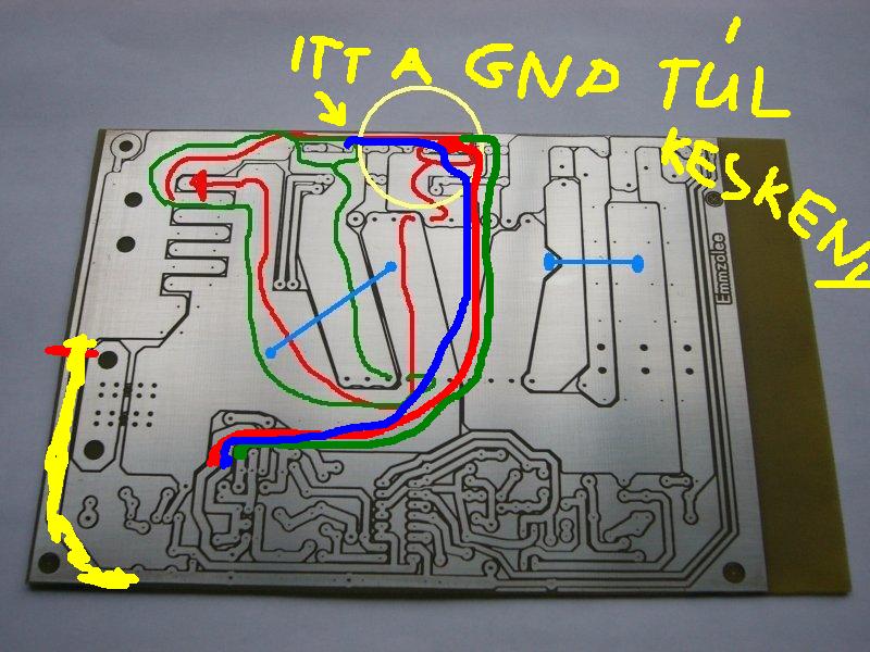 Ha jól értem akkor nekem a souce sinre is közvetlenül rá kell kötnöm a FET vez.panel GNDjét, mert most a konditól a sinig menő vezeték az közös a nagyáramu résszel. Remélem nem rúgtam fel olyan sok szabályt.