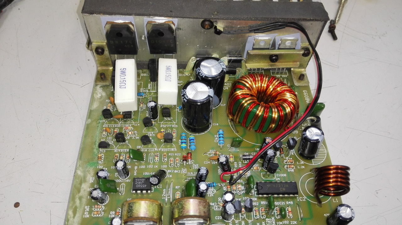Mégsem oldódott meg a probléma az árnyékolás egyik oldali kikötésével, talán egy kicsit lett csak jobb, másnap több időm volt foglalkozni a menet közbeni meghallgatással, így csak akkor derült ki.Ráadásul a hangja is torz lett.Viszont mérgemben bevittem a műhelybe és labortápról bekapcsolva, zavarta a műhelyben is a rádiót, pedig még jelkábelt sem dugtam bele.Amire rájöttem, hogy a belsejében galvanikusan el van választva a táp GND-je és a jelvezeték Árnyékolása.Jobb nem jutott eszembe, elkezdtem tapogatni a nyák alját úgy hogy egyik kezem a GND-n volt és volt hogy valamelyik érintésnél nem zavarta be a rádiót.Ez a pont a TL494 8-as és 11-es lába volt, ami össze van kötve amúgy.Oda tettem egy 100nF-os kondit, egyik felét a GND-re forrasztva és ezzel úgy tűnik meg oldódott a probléma.