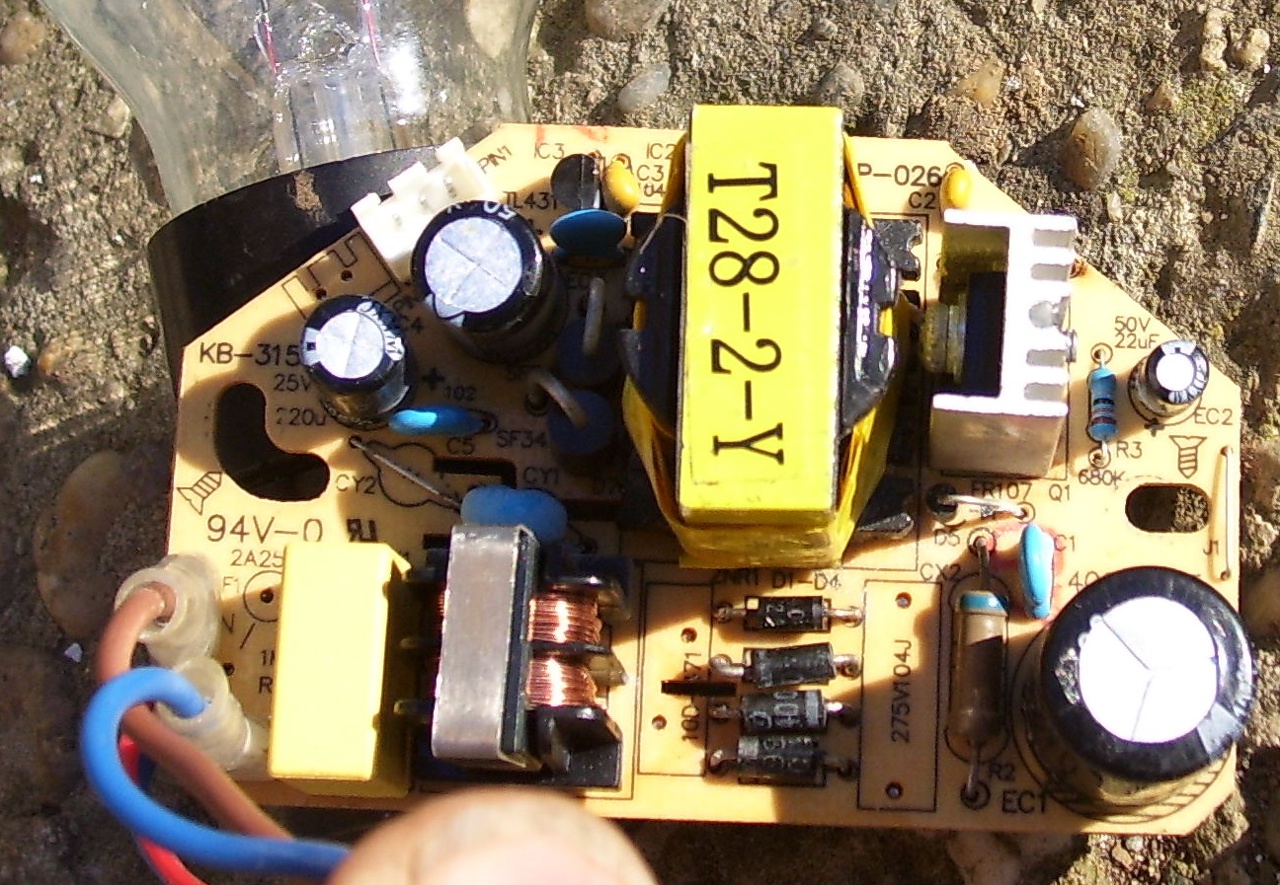 A "hatlábú rovar" valószínű, hogy egy High Performance ActivePSR -Primary Switching Regulator. A SOT23-6 tokozáson az SMD Top Mark pl. FSCR akkor az Active-Semi gyártmányú ACT361, amely 2W-7W közötti alkalmazáshoz használatos.