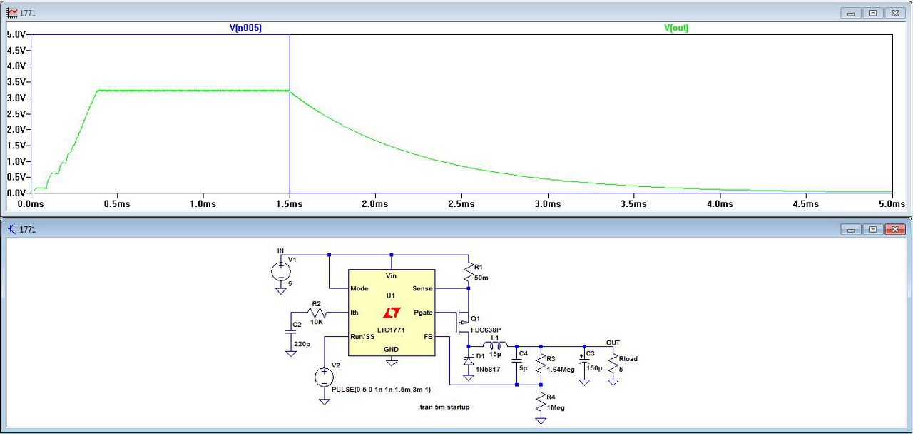 LTC1624, LTC1771 vagy (2-10V bemeneti tartomány): LTC1624 Ha jól néztem a(z) LTC1771-es adatlapját, még külsőleg be és kikapcsolni is tudod (mindjárt meg is nézem a szimulációban): Idézet: „RUN/SS (Pin 1): The voltage level on this pin controls shutdown/run mode (ground = shutdown, open/high =run)” A hozzászólás módosítva: Dec 29, 2016